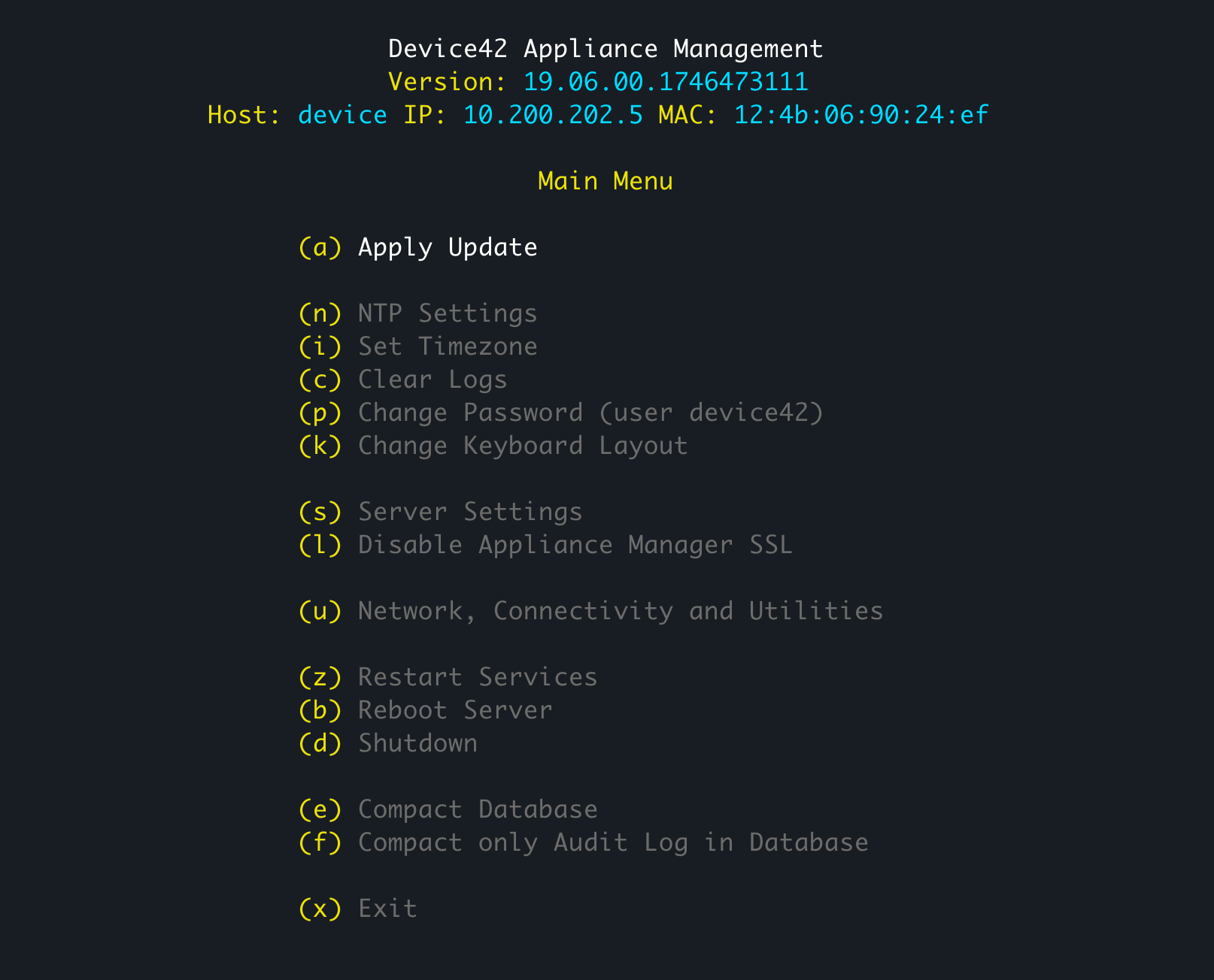 - Once the update is applied, you can log in to the Device42 Main Appliance and go to Tools > Settings > Update to verify the new version number.