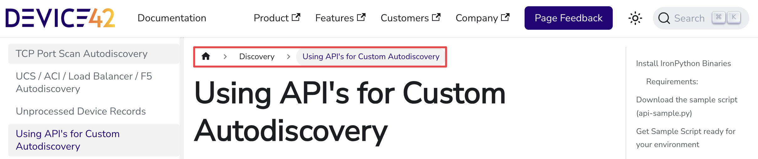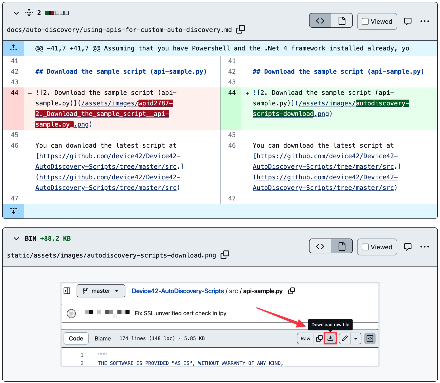 In this written example, we'll update the "Download the sample script (api-sample.py)" screenshot on the "Using APIs for Custom Autodiscovery" page.