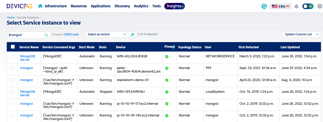 Application Groups use the concept of pinned services. Pinned services represent the core dependencies of your infrastructure, and discovered database services are automatically pinned by default.