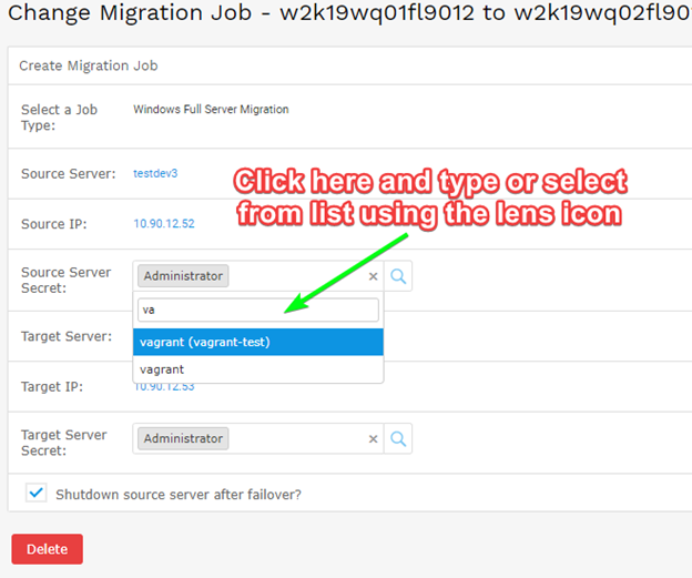 - In this example, we have added a new username vagrant to the source and target machines, so we will select both the source and the target secrets to change. But you can also change just the source or the target secret.